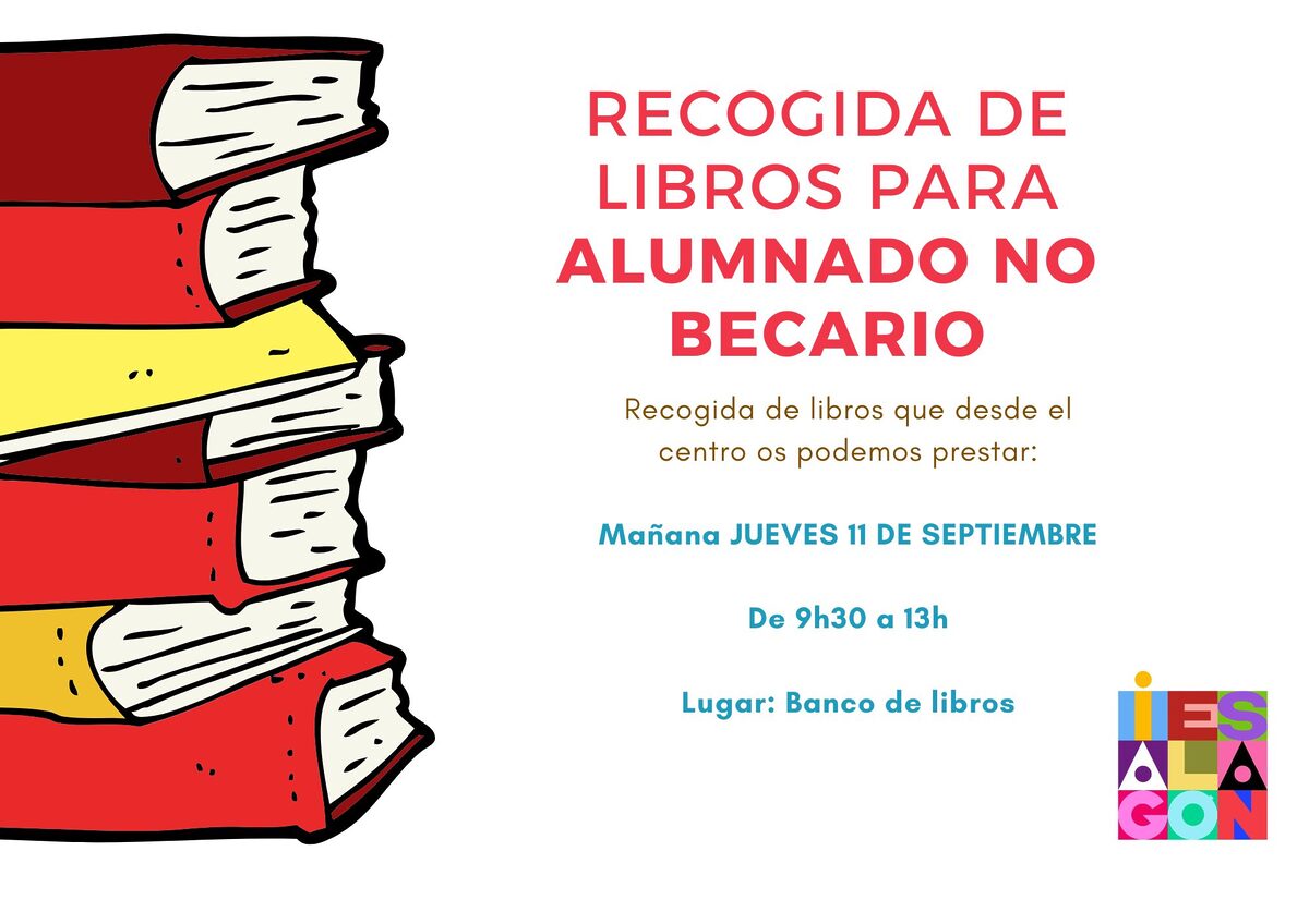 Realizado el recuento de libros sobrantes una vez repartidos al alumnado becario, podemos citaros mañana jueves día 11 de septiembre a partir de las 09:30h y hasta las 13:00h para recoger…
